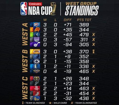 NBA杯最新形势:2队提前晋级,勇士火箭被淘汰,快船仍有机会