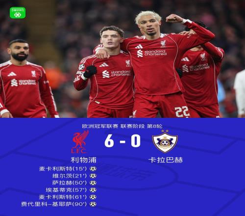 利物浦60卡拉巴赫晋级淘汰赛,麦卡利斯特双响,萨拉赫世界波