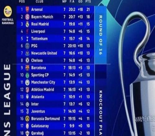 枪手拜仁提前晋级,欧冠末轮大乱战欧冠 01-22 07:55得益于赛制改革,欧冠联赛阶段第7轮战罢,从排名前8的头部争夺